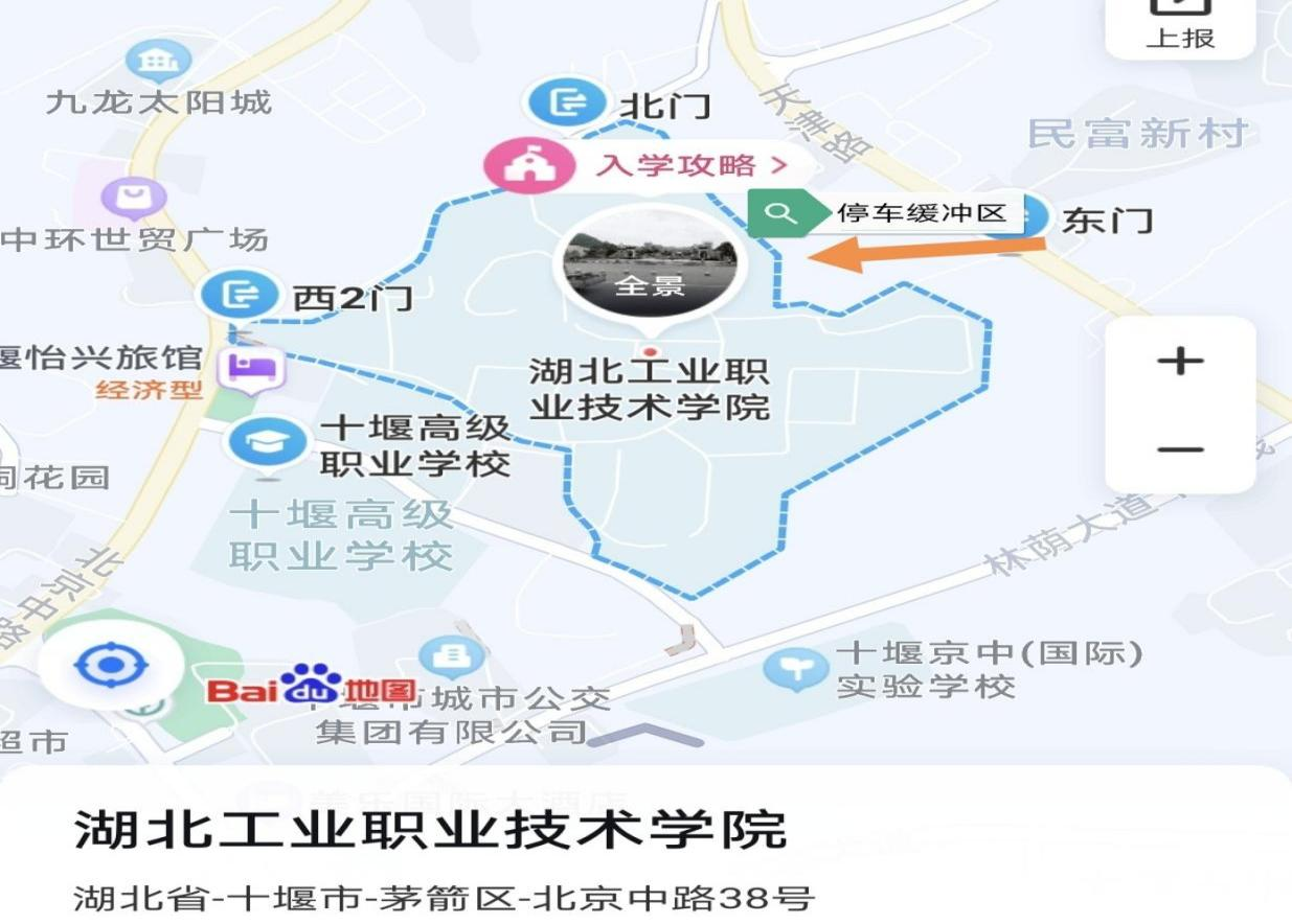 4.为确保防疫安全,家长、陪同人员及车辆谢绝入校,还请同学们和各位家长理解。beat365官网在十堰汽车站、火车站、高铁站、机场均有迎新接待,校内安排有充足的志愿者帮助同学们完成报到手续,请大家放心。大家务必做好旅途疫情防护,要尽量在家吃饱喝足,途中全程带好口罩,途中尽可能不就餐或少就餐,尽量减少口罩摘取次数。如必须自驾送行,只能从学校东门(天津路大门)进入缓冲带停车。如下指示图: