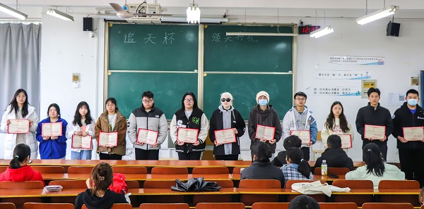为丰富大学生的校园生活,3月1日中午12点30,追天文学社在3201教室举行beat365中文官方网站第五届“追天杯”征文大赛颁奖典礼,参加此次颁奖典礼的嘉宾有,校党委宣传部陶亿老师、追天文学社全体成员,知行读书社和风华诗社社团负责人。