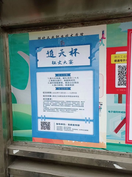 beat365中文官方网站第五届“追天杯”征文大赛由追天文学社主办,大学生记者团、知行读书社、风华诗社协办,设置了“奋斗正青春,献礼党的二十大”“青春志愿行,奉献新时代”“诵华章载豪情,歌赤心以明志”“魅力职院,我爱我家”四个话题,征稿历时一个月。