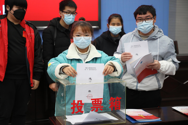 湖北工业职业技术学院第二十一次学生代表大会正式代表153名,代表名额超过学生会组织所联系学生人数的1%,覆盖各二级学院、年级及主要学生社团。代表名额的分配根据各选举单位的会员人数确定。代表的选举,坚持公开、公平、公正、严肃的原则,进行民主选举。在坚持先进性的同时,注重代表的结构比例,使代表的构成具有一定的代表性和广泛性。其中非校、学院学生会骨干的学生代表要求不低于60%,女性代表比例不低于30%,少数民族代表不低于5%,群众代表不低于5%,各二级学院代表名额原则上依照各二级学院学生会所联系学生人数按比例分配。