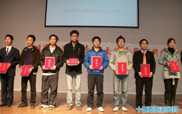 12月23日晚,由我院追天文学社承办,湖北医药学院江汉潮文学社和百草诗社、湖北汽车工业学院光线文学社和轩辕文学社及阳光左岸文学社、郧阳师专圣风文学社协办的十堰市大学生诗歌交流会暨颁奖晚会在我院会议中心举行。