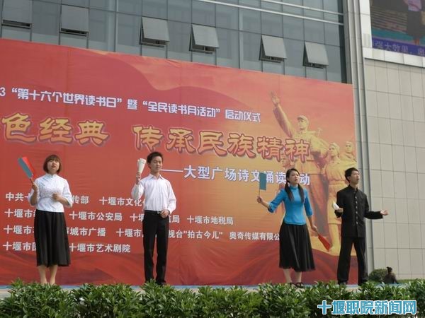 在此次活动中,我院四名领读同学朗诵了臧克家的《有的人》,我院学生方阵与其他方阵齐诵了《长征》、《有一首歌》、《我有一个强大的祖国》。现场气势宏伟,方阵各具特色。这次活动是为了纪念建党九十周年和辛亥革命胜利一百周年,颂扬在党领导下中国所取得的辉煌成就,缅怀党的光荣历史,歌颂党的丰功伟绩,激励各级党组织和广大党员勇于开拓,奋发进取,为全面实现我市“十二五”规划所确定的各项目标提供强大的精神动力。这次活动由市委宣传部、市文化体育局主办,市教育局、市公安局、市工商银行协办,市图书馆、市群众艺术馆承办。
