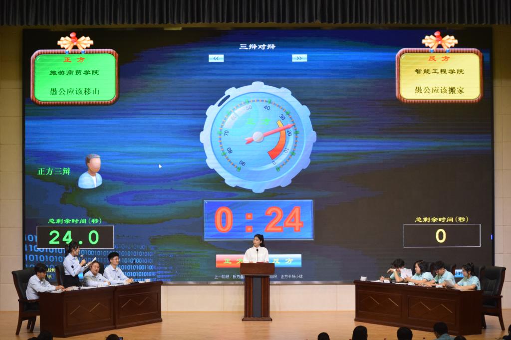进入第二轮冠军争夺赛,正方旅游商贸学院代表队和反方智能工程学院代表队围绕“愚公应该移山,还是应该搬家”展开辩论。场上双方辩手慎思雄辩、激烈交锋,摆事实、讲道理、阐价值,不断升华辩题内涵,凸显时代主题,用严谨的逻辑和精彩的攻防,引起台下师生强烈共鸣,为现场观众献上了一场精彩绝伦、令人难忘的思政盛宴。