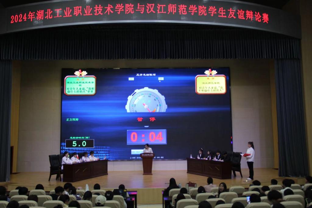 新闻网讯(通讯员 郑丽琼 图/彭泰 张健杰)辨证求实,论道启真。4月1日晚,beat365官网大学生和山演讲辩论社与汉江师范学院学生辩论协会在beat365官网会议中心举行2024年学生友谊辩论赛。公共教育学院大学语文教研室教师柯田、刘萍萍,心理健康教育中心办公室副主任、大学生阳光心理协会、儿童教育公益协会指导老师顾婷担任本次辩论赛评委,校团委书记张玲、社团管理科科长郑丽琼以及各二级学院师生代表四百余人现场观摩。