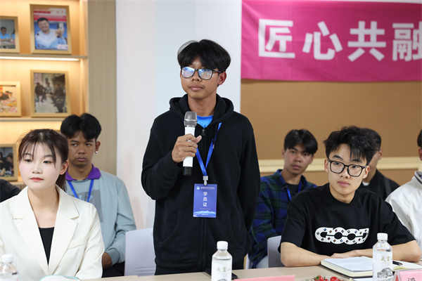 “您认为如果我们过来中国留学,需要做些什么准备工作?“你们对泰国人的印象如何?”“泰国人见面时的‘合十礼’有什么讲究?不同场合动作会不同吗?”……在“共话友谊”环节,中泰学生代表围绕中泰文化、生活、技能学习等方面积极发言,双方还就彼此感兴趣的话题展开深入交流。中方学生好奇泰国的学生社团、美食、流行文化等,泰方学生则对中餐礼仪、留学事宜、实习机会等问题踊跃提问,互动频繁,加深了对两国文化和教育的理解,也增进了对彼此学习生活和文化习俗的认识。