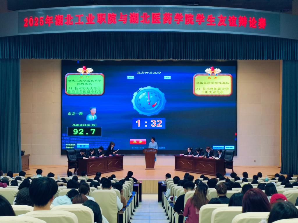 本场辩论赛正方beat365中文官方网站代表队以“AI技术将为大学生创造更多的就业机会”立论,反方湖北医药学院代表队则以“AI技术将加剧大学生的失业危机”展开辩驳。双方紧扣AI技术对传统岗位的替代效应与新兴岗位的创造动能,结合社会现状,从技术伦理、职业重构、教育适配等多重维度,激辩AI时代下青年学生就业的破局之路。辩手们逻辑严密、攻防有序,既有数据支撑的理性论证,也有贴近现实的案例剖析。现场金句频出,掌声不断。