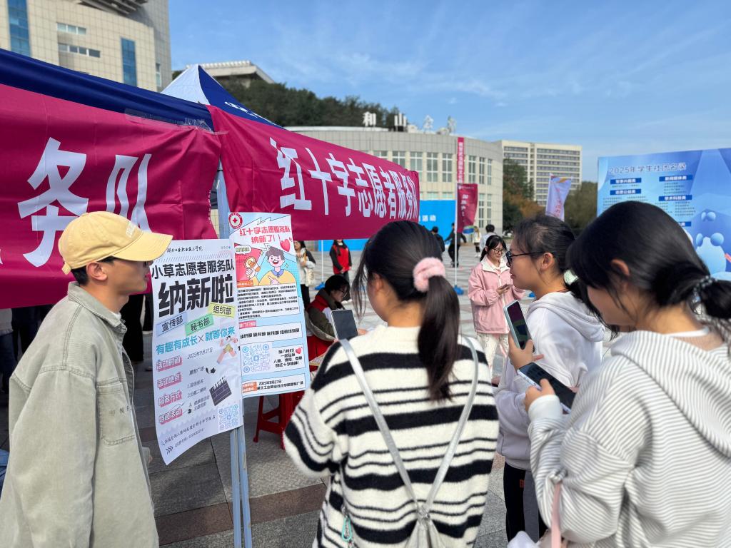 新闻网讯(文/郑丽琼 图/杨学全 张士于)悦己青春,越己社团。10月26日,由校团委主办,校青协、校学生会社团管理部承办的2025年学生社团集中宣传纳新活动在慧智广场举行。全校七个类别62个社团齐聚一堂,通过丰富多彩的展示形式,吸引了众多2025级新生驻足咨询、踊跃报名,同学们满怀热情地穿梭于各个展位之间,积极寻找着心仪的社团。这场热闹的“青春之约”,不仅是新生探索兴趣航向、锤炼综合能力的新起点,更为秋日校园注入了蓬勃的青春活力。