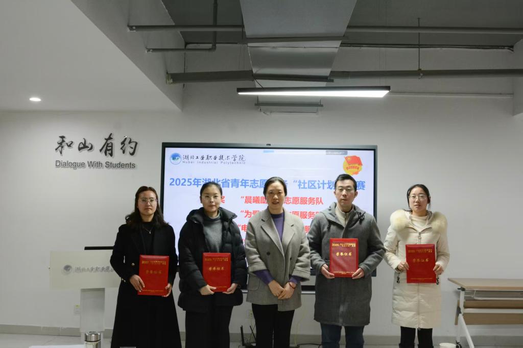 会议同期举行了2025年度青年志愿服务工作先进典型评选活动,与会校领导向2025年湖北省“爱心托管班”七彩假期“优秀志愿服务团队”、湖北省青年志愿服务“社区计划”竞赛获奖团队师生代表颁发荣誉证书。