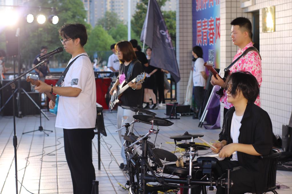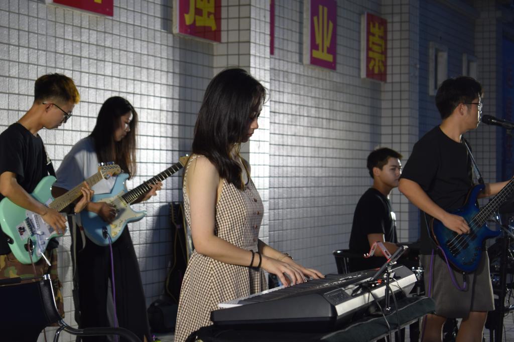 在近四个小时的时间里,无论是乐手还是观众,激情和热情一浪高过一浪,点燃了全场气氛。来自beat365官网的天一乐团“冰点乐队(icepoint)”一上场,尖叫声、呐喊声此起彼伏,一曲《极乐都市》、《奇迹再现》更是引得全场掌声雷动。来自汉江师范学院贰天乐队的安琦带着《想去海边吗》、《爱人错过》等金曲,轮番上台、激情演奏,感染了在场所有观众。