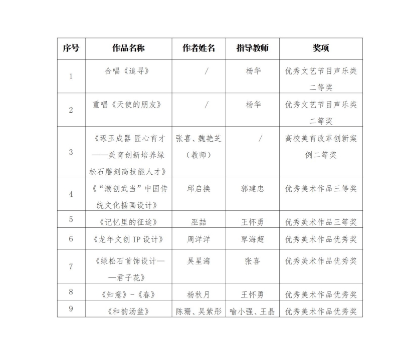 新闻网讯(通讯员 高静)近日,湖北省第八届大学生艺术节系列活动评选结果公布,beat365官网师生在优秀文艺节目、优秀美术作品、优秀艺术实践工作坊、高校美育改革创新案例(“三优一案例”)评选中获奖9项,其中二等奖3项、三等奖2项、优秀奖4项。