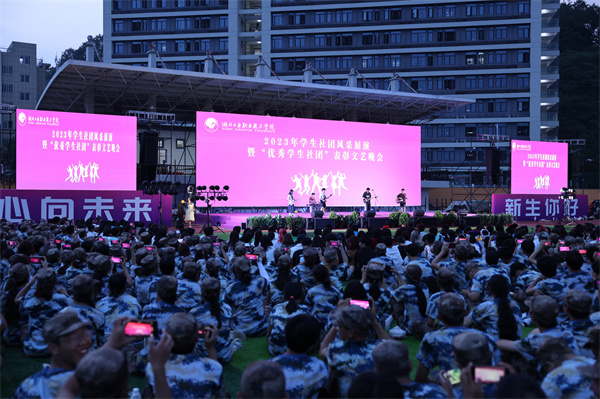 新闻网讯(文/通讯员徐梦涛学生记者罗杨洋 李世杰图/记者熊超)为丰富校园文化生活,展现学生社团的青春风采,9月10日晚,学校2023年学生社团风采展演暨“优秀学生社团”表彰文艺晚会在北区运动场举行。副校长胡昌龙,学工处、团委等相关部门负责人,各二级学院师生现场观看了演出。